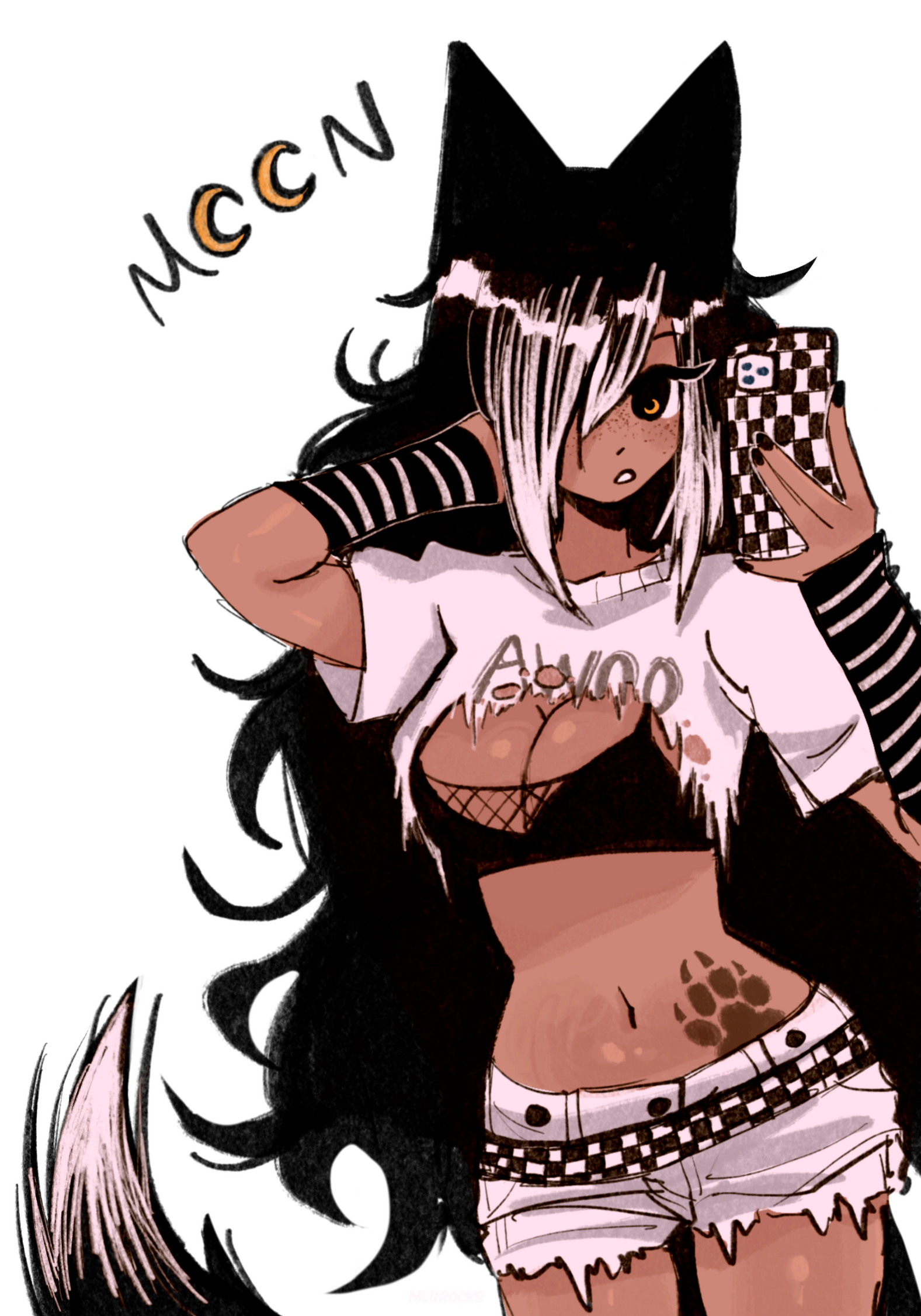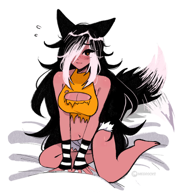 Prefers ripped/tight clothing & enjoys 2000s scene fashion. Instrument of choice is as big of a drum set she can get her paws on.Moon is hardworking, kind and patient. She is incredibly soft-spoken and prefers to speak in the form of online chats where she seems much more extroverted.She is an excellent and technical drummer as its her favorite way to express herself and let out all frustrations.She is Wynona's childhood friend and develops some sort of crush for most women